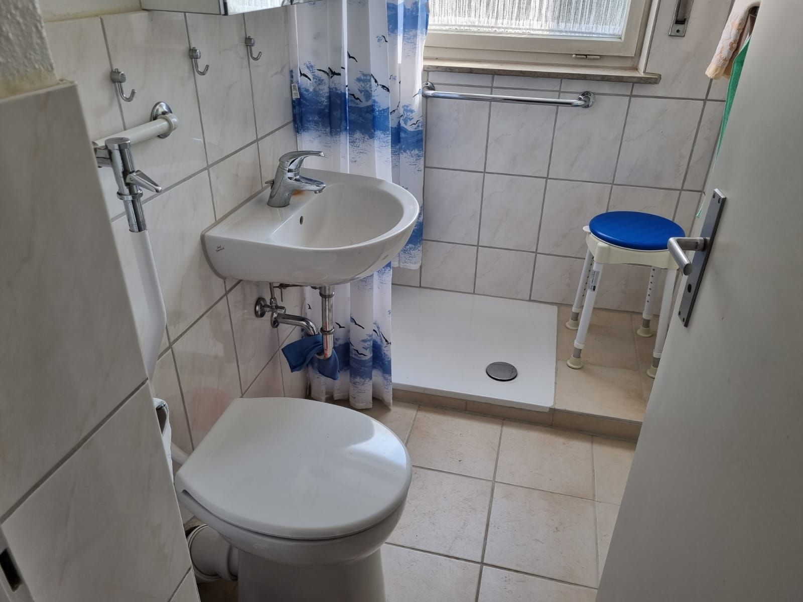 Erdgeschoss: Flur, Bad mit Dusche, Küche, Vorratsraum, Esszimmer, Wohnzimmer, Balkon
